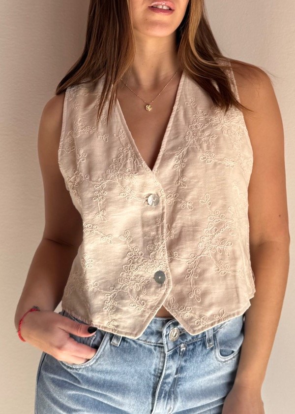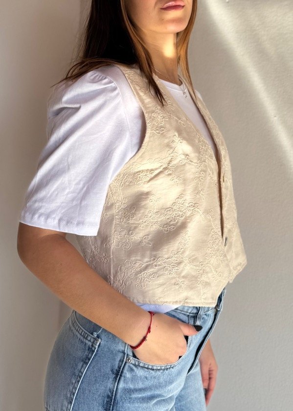 Chaleco sastrero bordado. Disponible en talle unico, abarca hasta un TL aprox