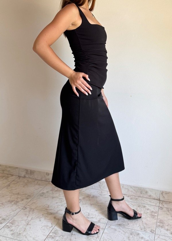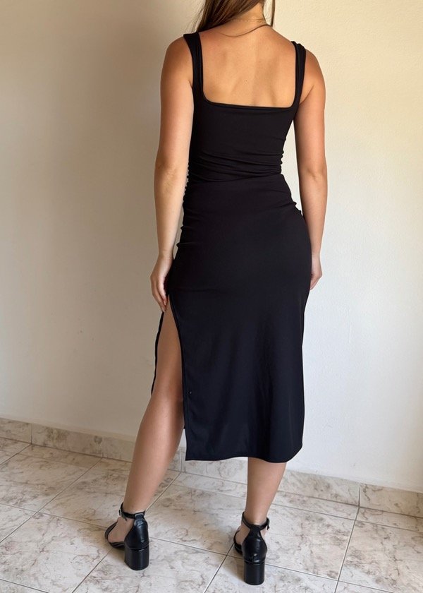 Vestido de morley de algodon, escote cuadrado, con frunce laterales y tajo Disponible en talle unico abarca hasta un T3 aprox.
