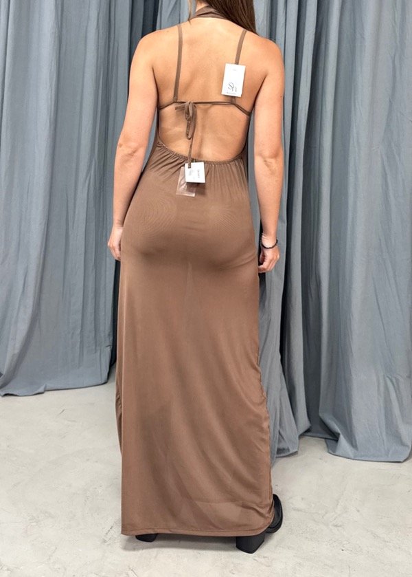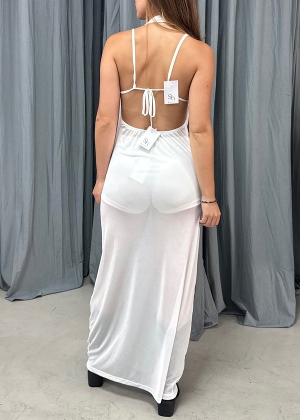 Vestido de tul, escote con buche, con tira en busto. Disponible en talle unico abarca hasta un T3 aprox.